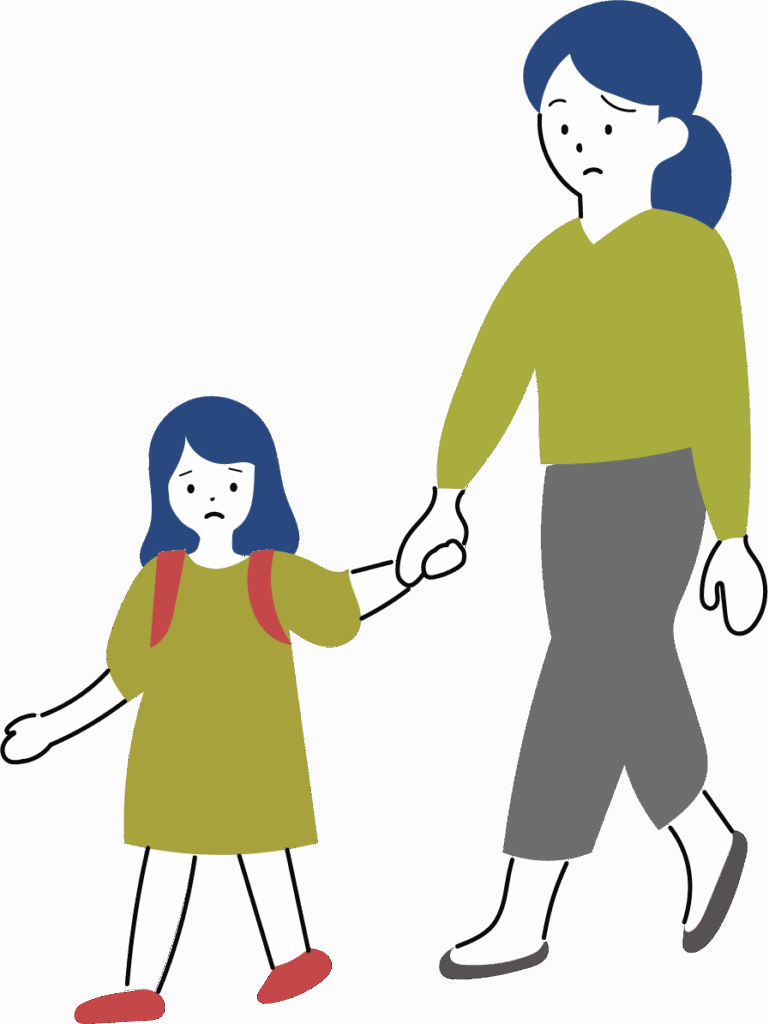 前夜の就寝が遅く、朝は声かけ連発。親が荷物を詰め、校門まで毎日同行。子どもは「ママがいないと無理」と訴え、教室まで一緒でないと泣き出す状態が3ヶ月続いていた。